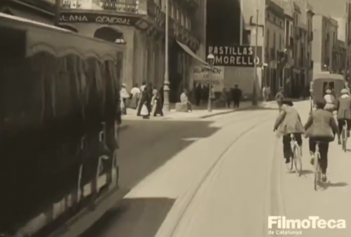 A les imatges es pot veure una ciutat on encara no hi havia cotxes, però sí moltes bicicletes, l'antic tramvia de Barcelona, que travessava el carrer de Gran de Gràcia, i molts carruatges.