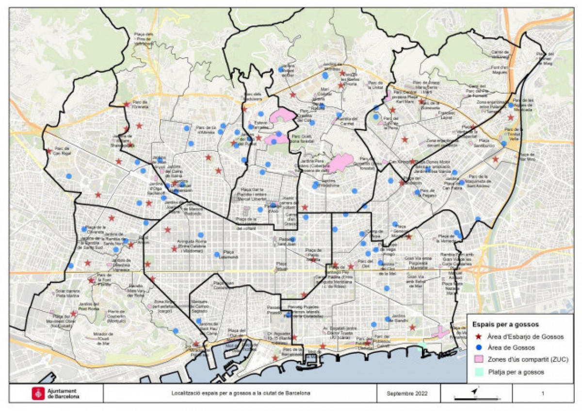 L' Ajuntament de Barcelona ha començat els tràmits per passar dels 45.000 metres quadrats a una superfície total de 945.000 metres quadrats a la ciutat perquè els gossos puguin anar solts, amb la incorporació de 103 Zones d'Ús Compartit (ZUC).