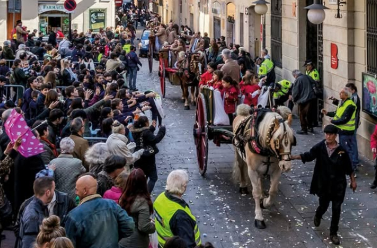 A cavall, en carruatges o camions, els membres de les colles van llançar una pluja de caramels i llaminadures per a compartir-los amb el públic, al ritme de la música de les bandes.