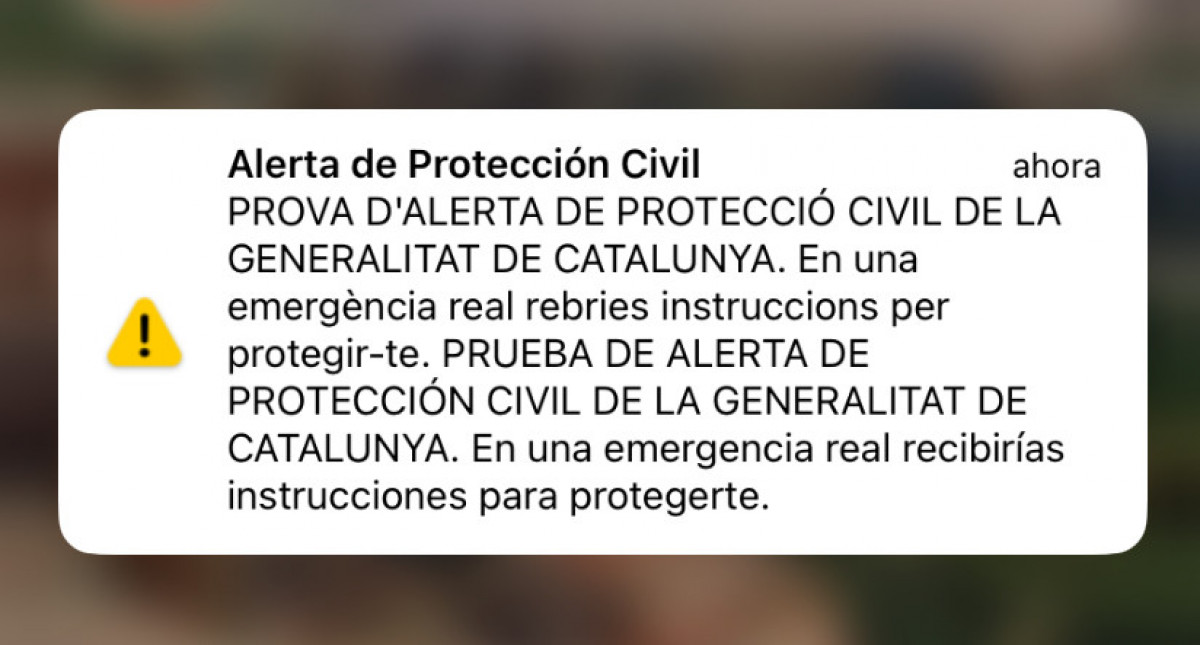 Tal com estava previst, aquest dilluns a les 10.00 hores, la majoria dels telèfons mòbils a Barcelona i cinc comarques confrontants han rebut un missatge de prova del sistema d'alertes de Protecció Civil de la Generalitat, conegut com ES-Alert.