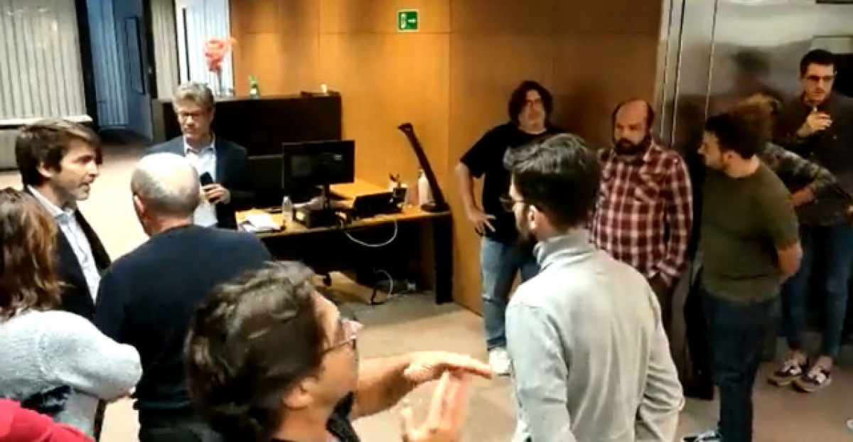 El compte de Twitter del Comitè d'Empresa va publicar un vídeo on es veu la seva protesta davant de la direcció del grup Premsa Ibèrica