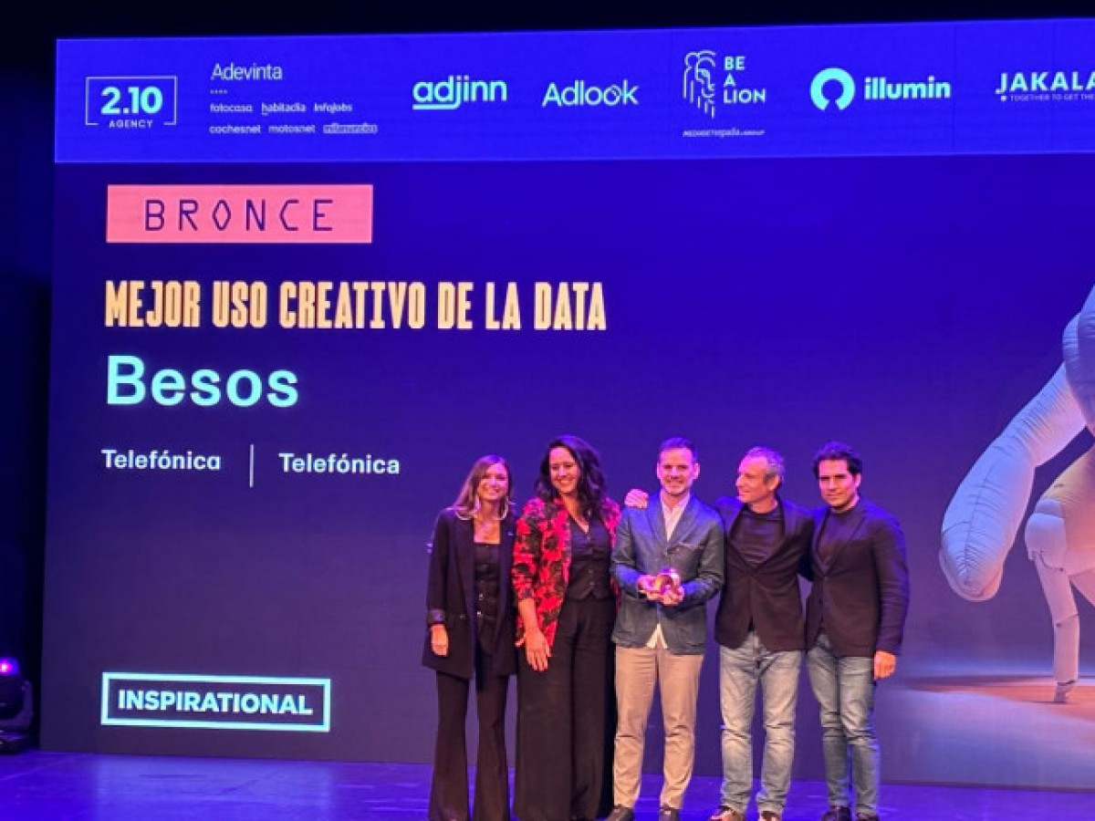 La setmana passada, els Premis Inspirational 2024 , organitzats per IAB Spain, van tenir lloc al Cercle de Belles Arts de Madrid. Aquests guardons, que busquen reconèixer les campanyes, projectes i empreses més inspiradores dins del sector de la comunicació i publicitat en entorns digitals, van destacar Telefónica per la seva destacada tasca a la categoria de "Millor ús de la data". L'empresa va rebre el bronze per la seva innovadora campanya Petons, una de les dues accions creades per commemorar el seu Centenari.