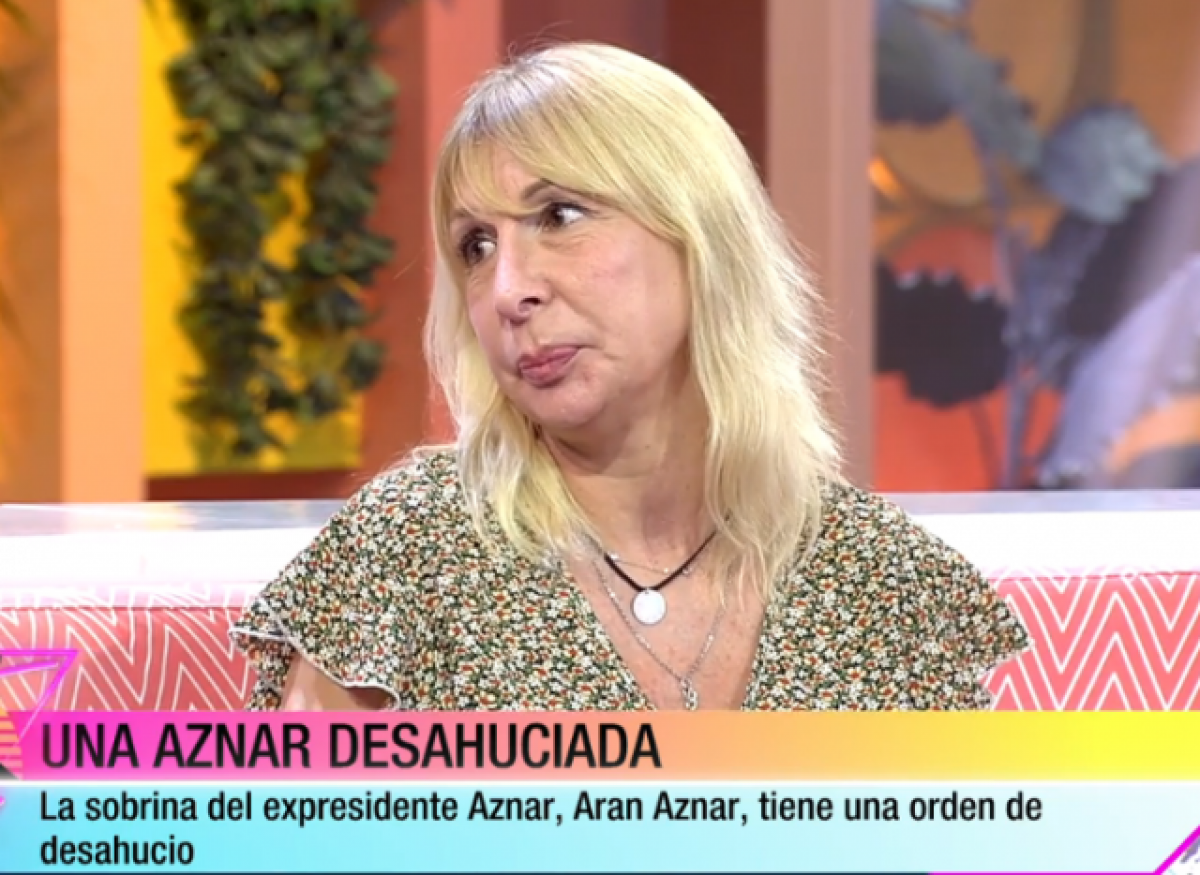 Aran Aznar va acudir al programa ' Ja és estiu ' per parlar de la seva delicada situació econòmica i per llançar un missatge d'auxili. La neboda de l' expresident del Govern, José María Aznar, està desesperada perquè, ara mateix, s'enfronta a una ordre de desnonament per no poder fer front a l'aplegament del lloguer de l'habitatge on viu amb la seva filla.