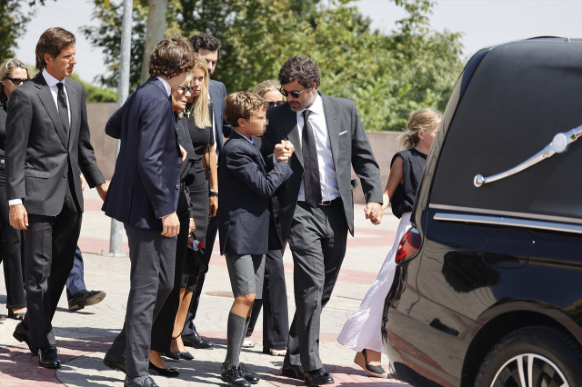 Carla Goyanes, just darrere de la seva mare, caminava acompanyada pel seu marit, Jorge Benguría, que no s'havia separat del costat ni per un instant des que dilluns rebessin la devastadora notícia. Malgrat el seu propi patiment, Cari treia forces d'un lloc inabastable per intentar consolar els seus néts, embolicant-los amb petons i abraçades carregades d'una tendresa i un dolor indescriptibles. Junts, enmig de la seva tristesa, van avançar fins al panteó familiar, on, amb el cor destrossat, van dir el darrer adéu a Caritina.