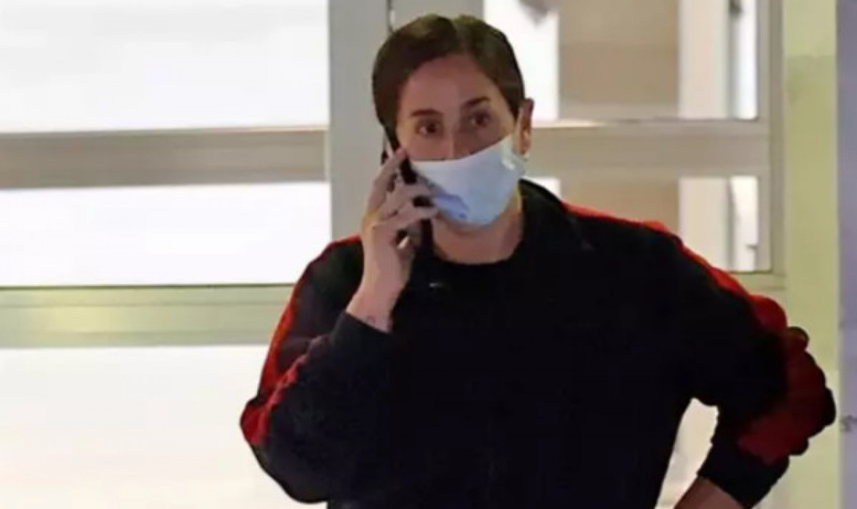 A les fotos, captades en exclusiva per Europa Press, veiem una Anabel amb rostre de preocupació i màscara quirúrgica -per evitar transmetre qualsevol virus o bacteri a la seva filla- parlant per telèfon molt seriosa mentre camina d'una banda a l'altra de la porta del centre.