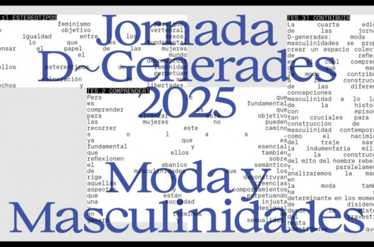 La quarta edició de la jornada D-generades: moda i masculinitats es proposa crear un espai col·lectiu de reflexió, en el qual comprendre de quina manera la moda ha contribuït a la construcció de les diferents concepcions de masculinitat al llarg de la història, amb episodis tan capitals per a la construcció de la masculinitat contemporània com el del naixement de l'home de vestit sastre. I, paral·lelament, analitzarem la manera com la moda també ha estat determinant en els moments de dissidència, des de la història del transvestisme fins a les identitats queer. És fonamental i essencial que "ells també reflexionin sobre el ventall semàntic de masculinitats que els regeixen i desconstrueixin aquelles creences, aspectes i comportaments que estan perpetuant una societat injusta i desigual en clau de gènere i sexualitat", afirma el comunicat del museu. Entre els ponents, Bob Pop, Ken Pollet o Sílvia Rosés.
