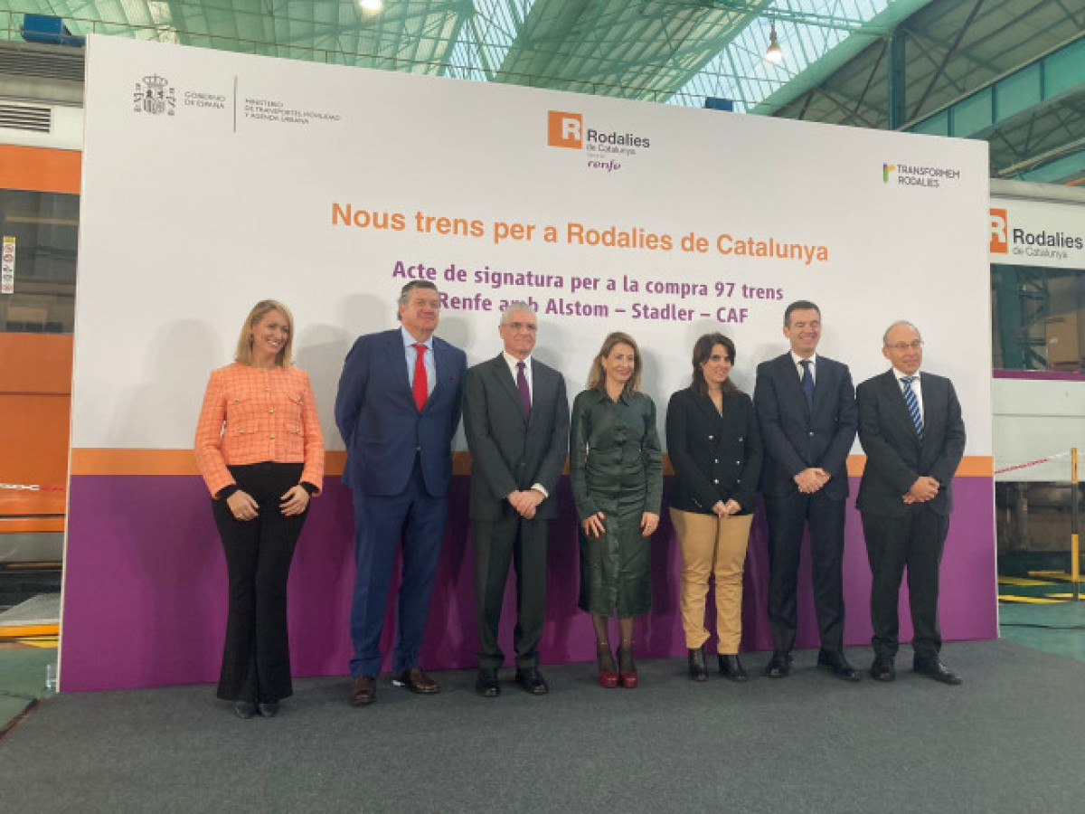 A la firma hi han participat els presidents d'Alstom, Leopoldo Maestu, i Stadler, Íñigo Parra, i el conseller delegat de CAF, Javier Martínez, i ha comptat amb la presència de la ministra de Transports, Mobilitat i Agenda Urbana, Raquel Sánchez, i la delegada del Govern a Catalunya, Maria Eugènia Gay.