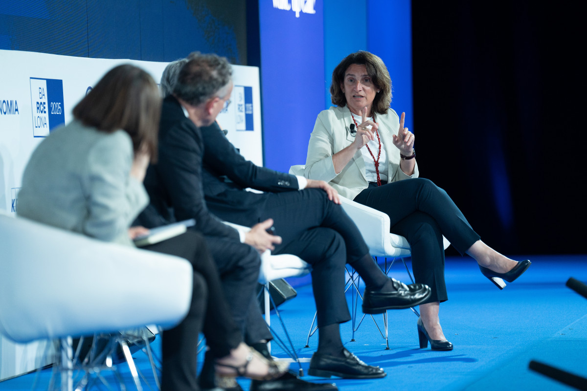 Teresa Ribera, vicepresidenta de Transició Neta, Justa i Competitiva de la Comissió Europea, va participar en una ponència al costat de Lucca de Meo, CEO del Grup Renault, i Jeromin Zettelmeyer, director de l'Institut Bruegel. Van discutir sobre com combinar l'ambició climàtica amb l'enfortiment del teixit industrial europeu.