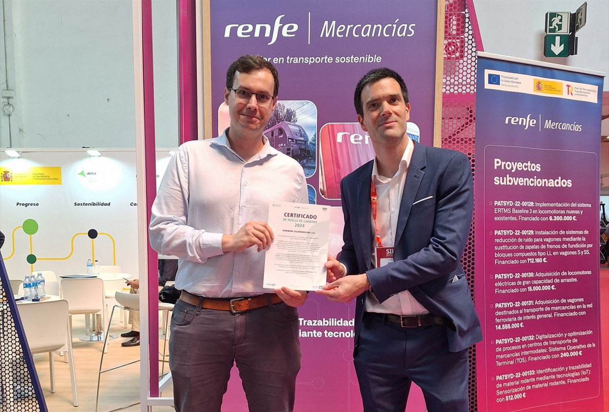 Renfe Mercaderies ha lliurat el Certificat de Petjada de Carboni a Farinera Vilafranquina, Railsider, Pecovasa i APM Terminals Spain Railway, en el marc del SIL 2025, informa en sengles comunidados aquest dimecres.