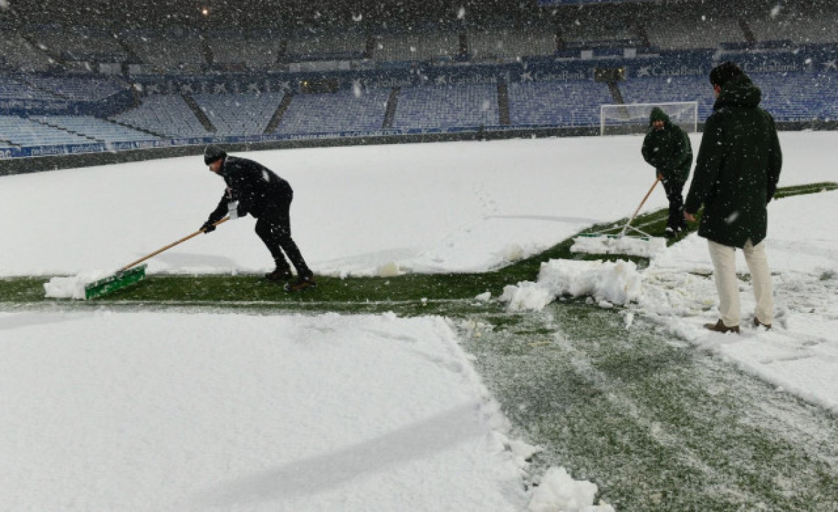 La neu que va caure divendres passat 19 a Saragossa va cobrir la gespa de l'estadi de La Romareda portant a suspendre el partit de futbol que tenia previst jugar el Reial Saragossa contra el Futbol Club Andorra.