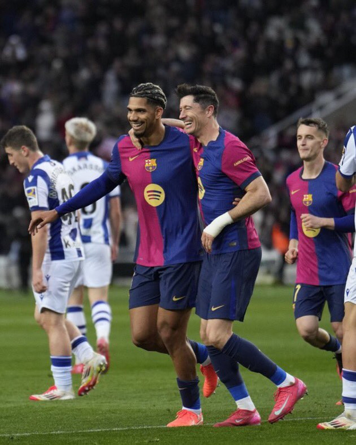 Els gols del Barcelona van ser anotats per Gerard Martín, Dani Olmo, Ronald Araújo i Robert Lewandowski. Gerard Martín va obrir el marcador després d'una jugada de Lamine Yamal. El segon gol va arribar amb un tret de Dani Olmo que es va desviar en Marc Casadó. En la segona meitat, Araújo i Lewandowski van ampliar l'avantatge, segellant la golejada Amb aquest triomf, l'equip dirigit per Hansi Flic supera a l'Atlètic de Madrid i al Reial Madrid en la classificació, aprofitant l'empat d'aquest últim contra el Betis. La Reial Societat, per part seva, no va poder reaccionar a causa de la inferioritat numèrica i la solidesa del Barça, però continuarà lluitant pels llocs europeus en les pròximes jornades.