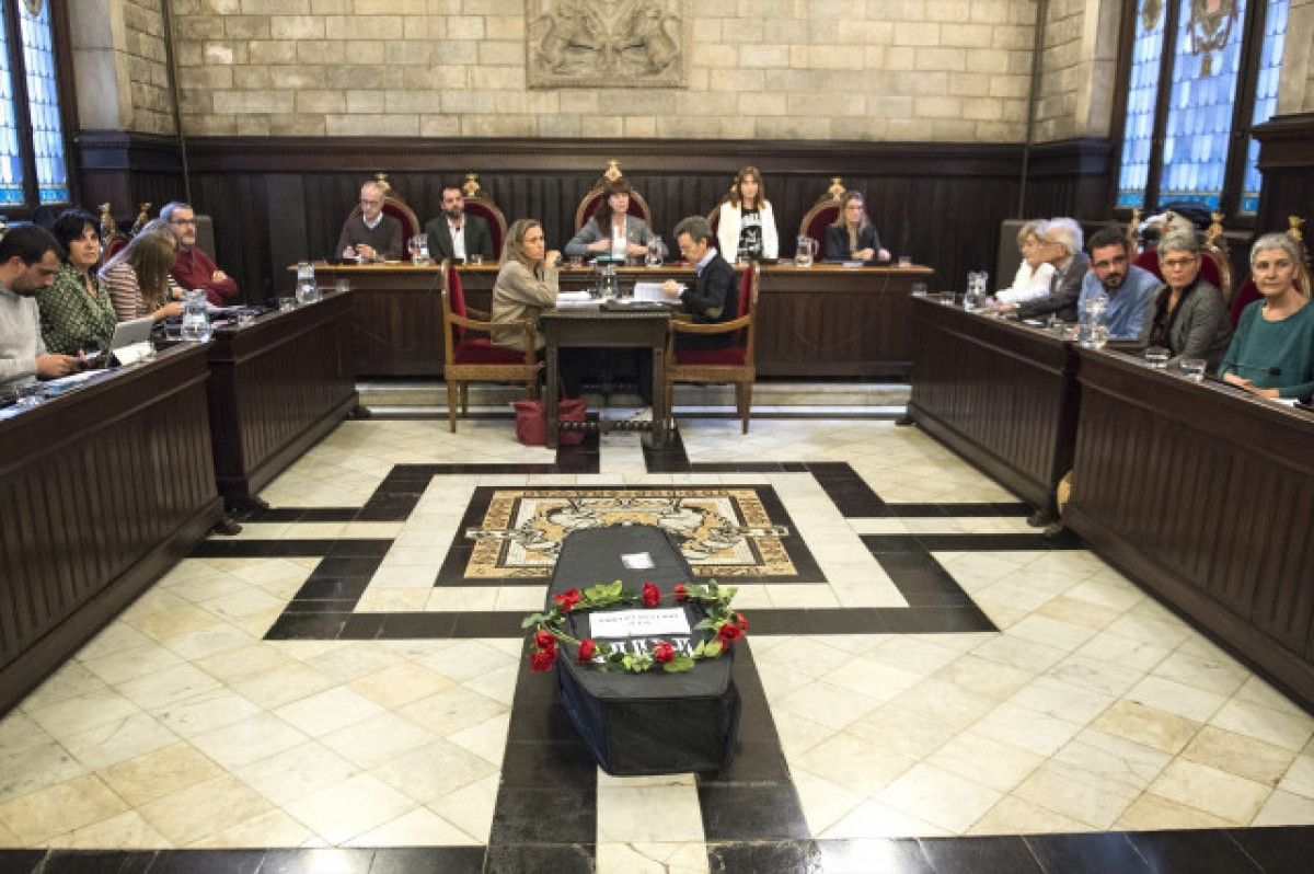 Policies locals de Girona porten un fèretre al Ple de l'Ajuntament per constatar "la mort de la confiança" amb l'alcaldia