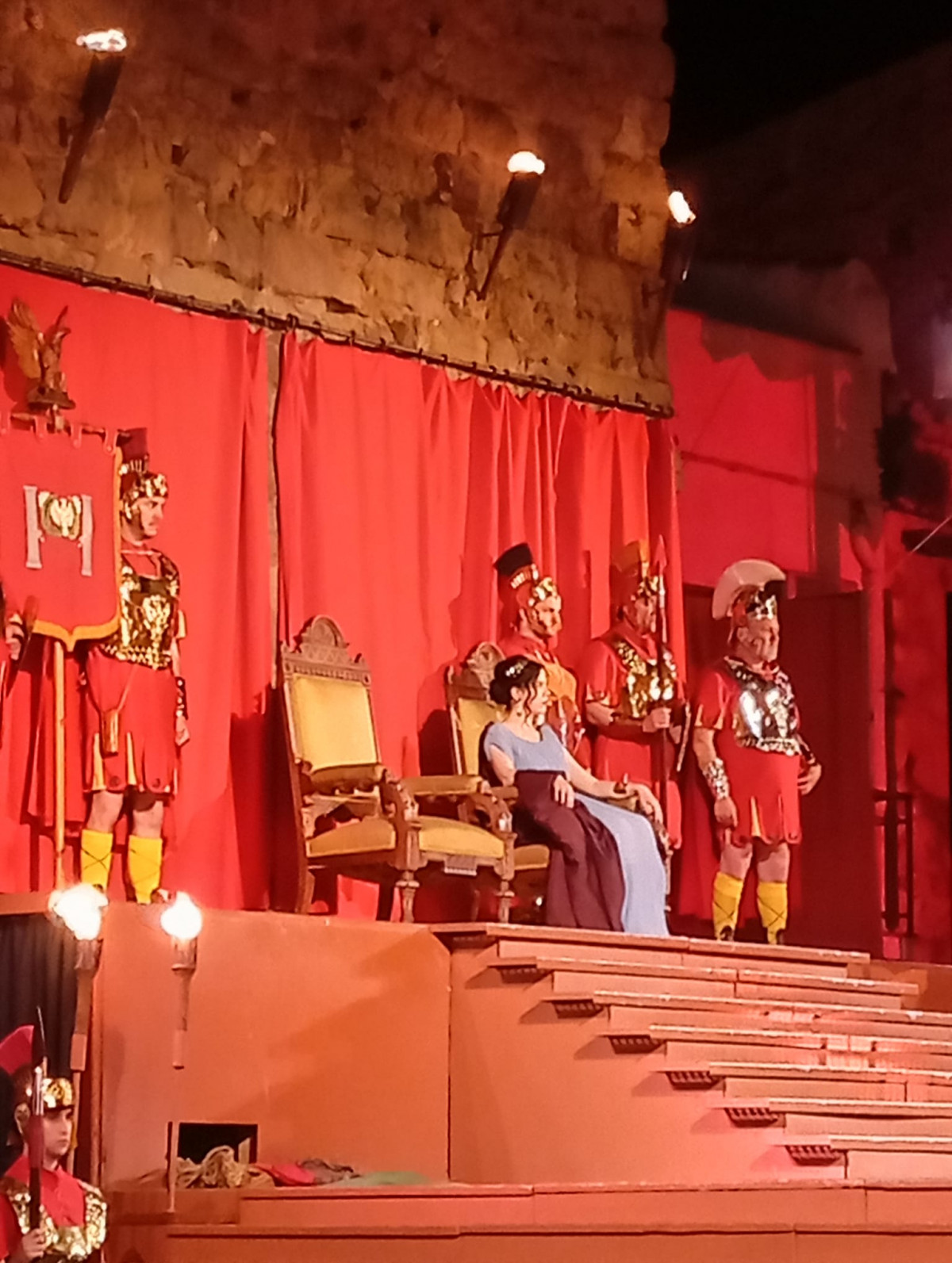 Passada la mitjanit, ja en Divendres Sant, la vila medieval —custodiada per les seves muralles i torres fortificades— es va submergir en la foscor. La processó va avançar entre ombres, torxes i silenci, mentre s’escenificaven moments com les tres caigudes de Jesús, acompanyades d’una impressionant ambientació audiovisual. Els assistents es van veure immersos en una atmosfera gairebé hipnòtica.