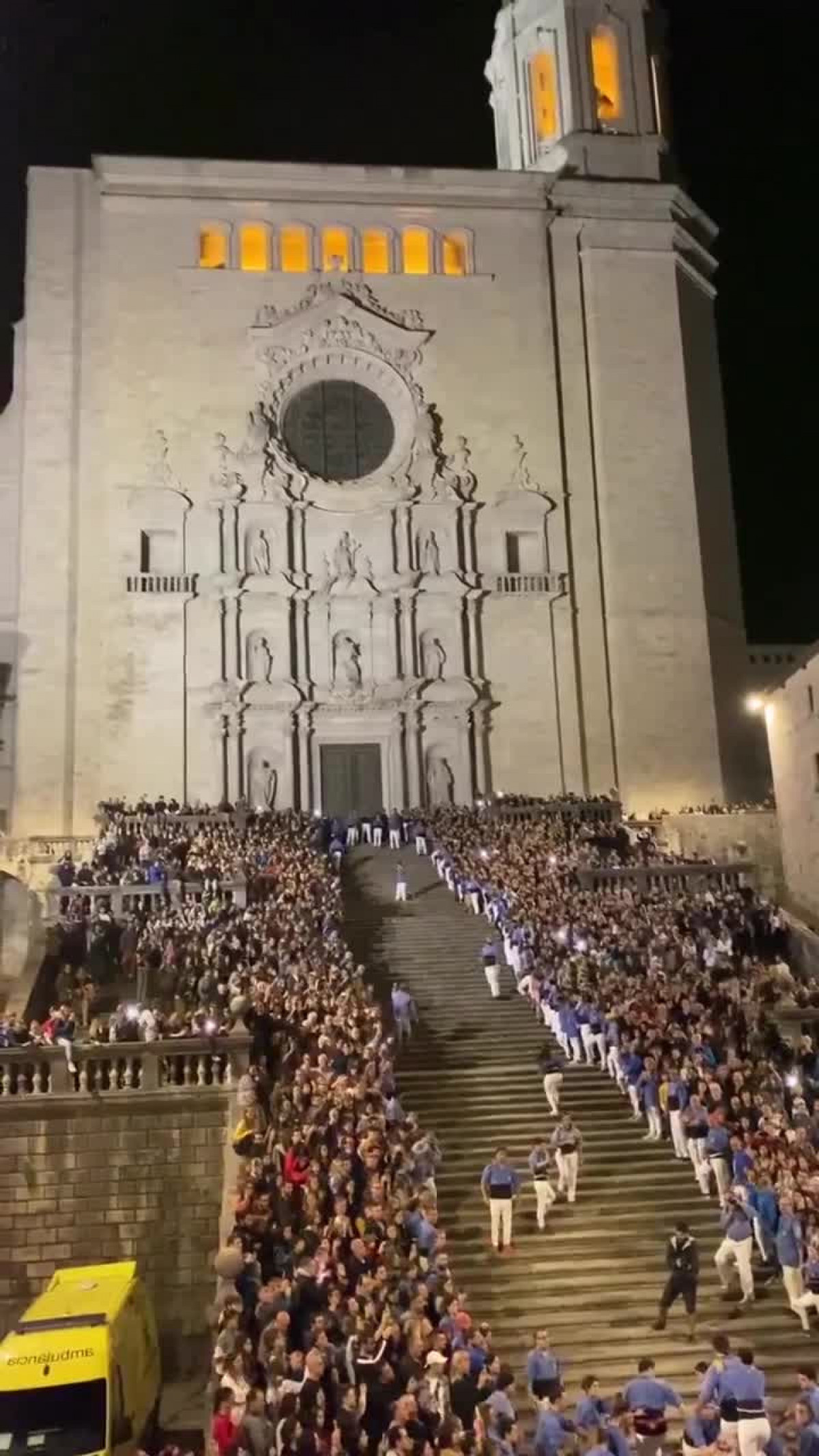 Vídeo | Els Marrecs de Salt conquisten l'escalinata de la Catedral amb un “pilar de 4” en menys d'un minut