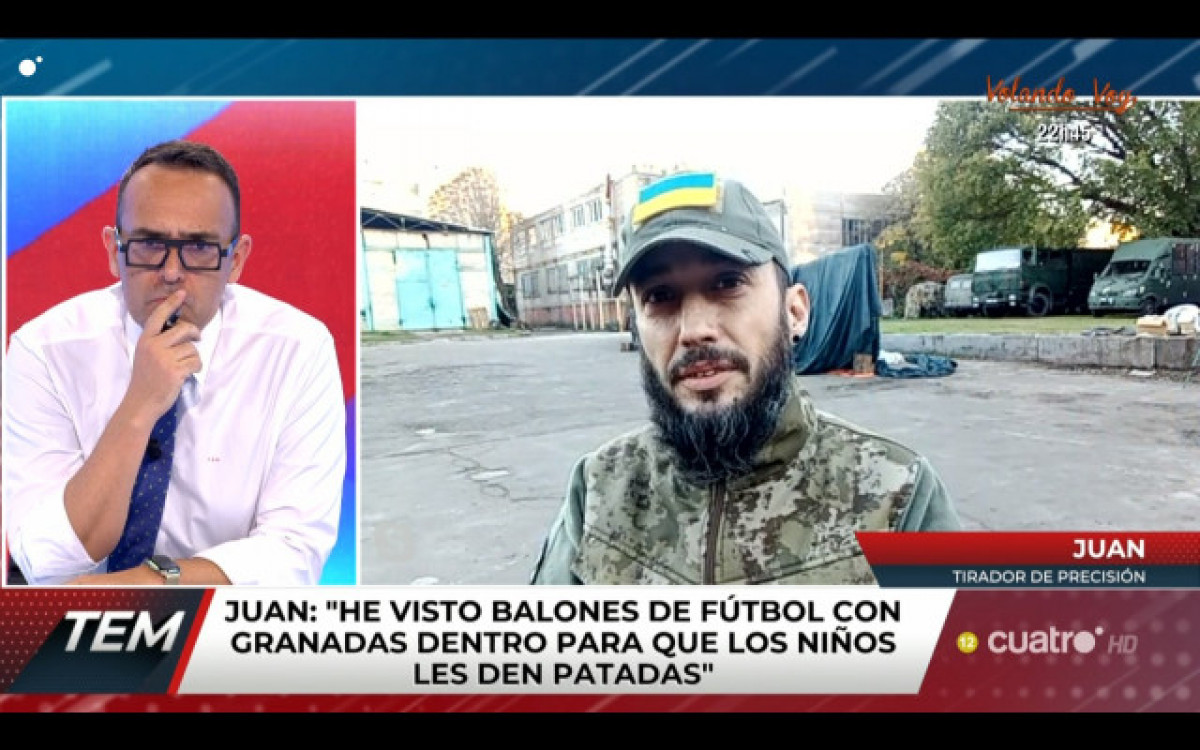 L'espanyol ha intentat justificar per què segueix lluitant en aquesta guerra davant Risto Mejide i els col·laboradors del programa "He vist pilotes de futbol amb granades a dins perquè els nens els donin puntades de peu", ha relatat l'exlegionari, que entén que no pot abandonar Ucraïna fins que hagi acabat aquesta barbàrie. "Per les carreteres he arribat a veure mans de nens amputades", ha afirmat Juan.