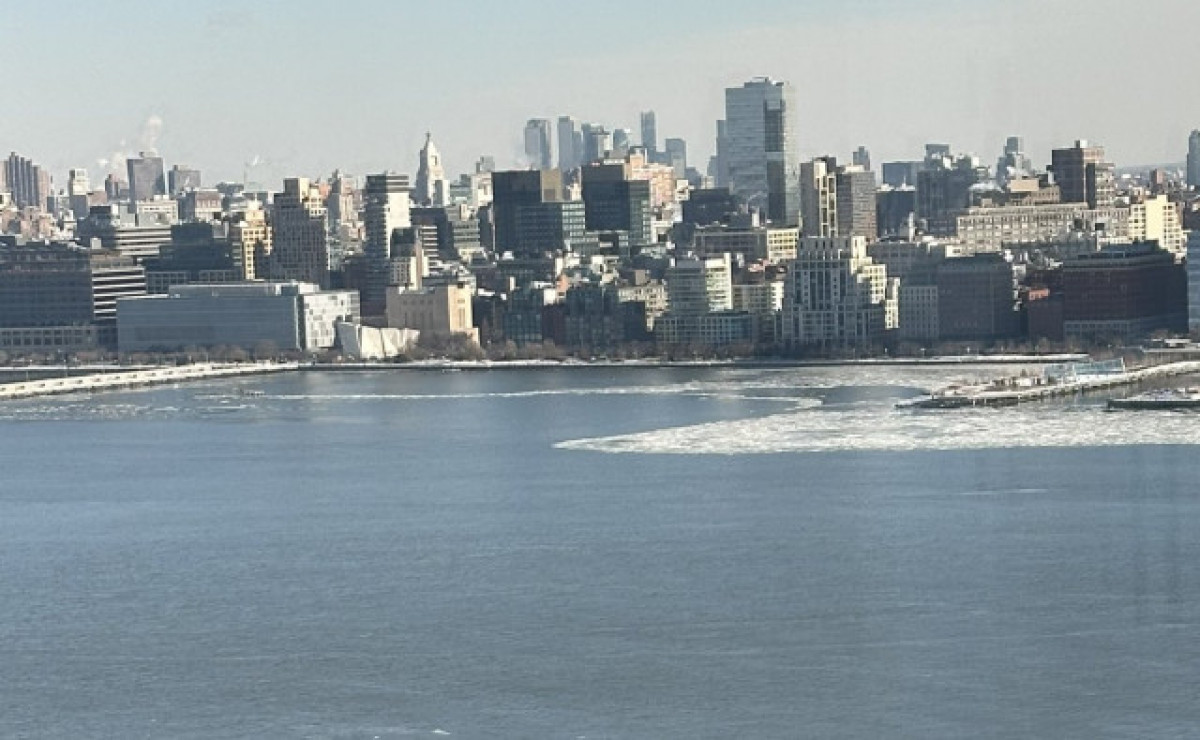 El riu Hudson , que envolta la ciutat de Nova York en diversos dels seus districtes, s'ha congelat per les baixíssimes temperatures que està patint la Gran Poma .