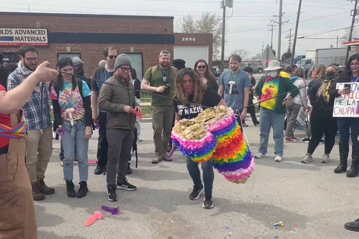 La concentració més destacada va tenir lloc a Broadview, on desenes de persones es van reunir davant del centre de processament de l’ICE amb joguines sexuals a les mans. Lluny d’una protesta convencional, els assistents van corejar consignes, van organitzar jocs i van llançar els objectes a l’aire o els van enganxar a senyals i vehicles.