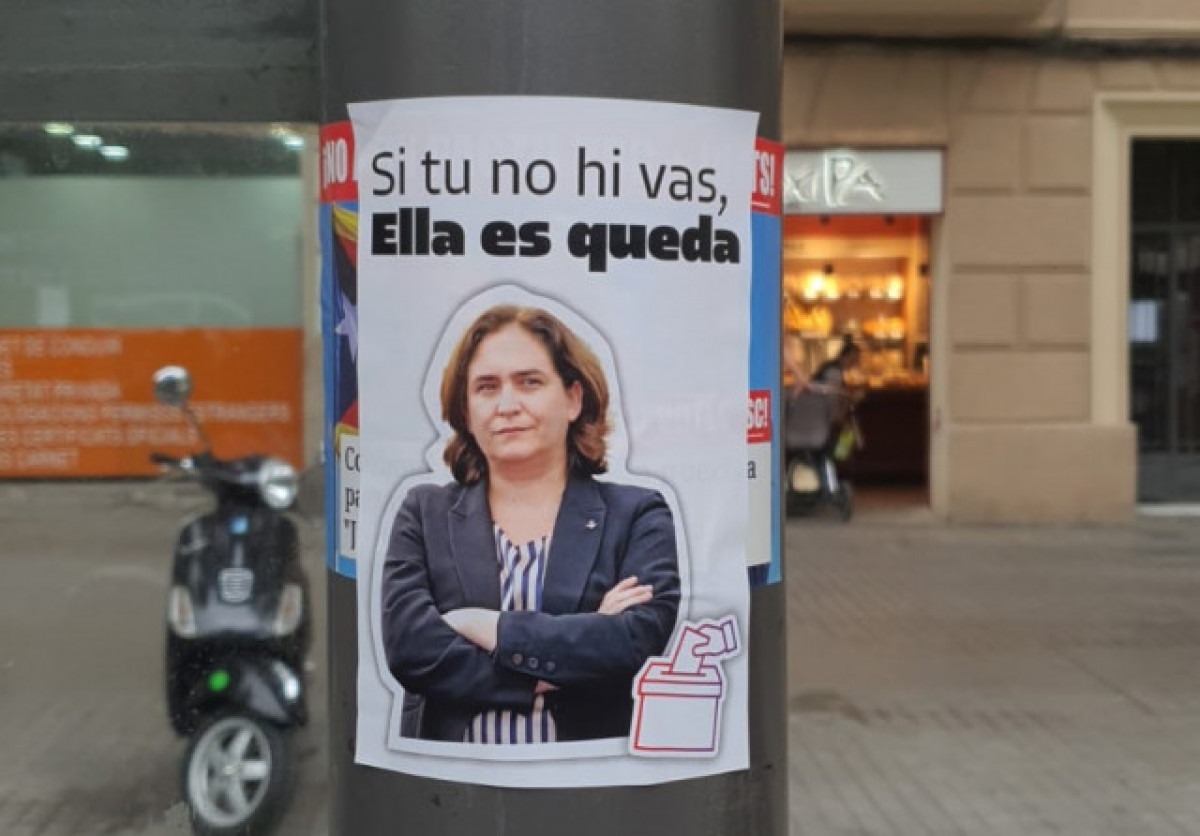 Les eleccions municipals se celebren aquest diumenge 28 de maig i la gent deixa clara la seva opinió cada cop que pot. És per això que a vaires parades d'autobus de la cèntrica Avinguda de la Granvia de Barcelona han aparegut cartells amb el missatge "Si tu no hi vas, ella es queda", en referència a l'alcaldessa Ada Colau i fent una crida a la participació.