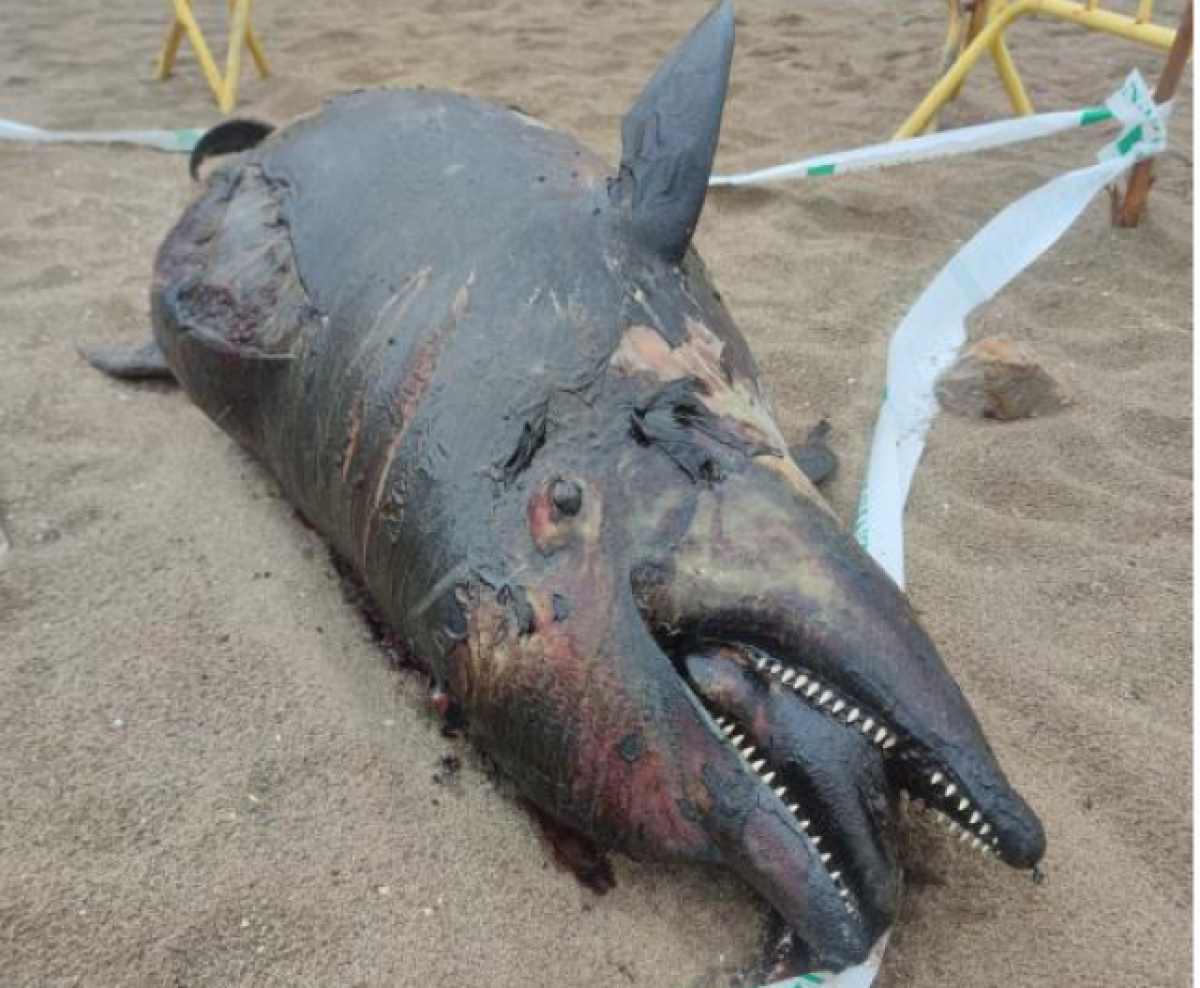 Estupefacció a Castelldefels . Diversos usuaris es van trobar amb un dofí a la platja del municipi del Baix Llobregat . Segons es pot observar a les imatges l'animal es troba en avançat estat de descomposició a la sorra. El cetaci va aparèixer a prop del Port Ginesta i a prop de la zona de Botigues. Diversos ciutadans s'havien queixat que l'animal portava diversos dies a la platja.