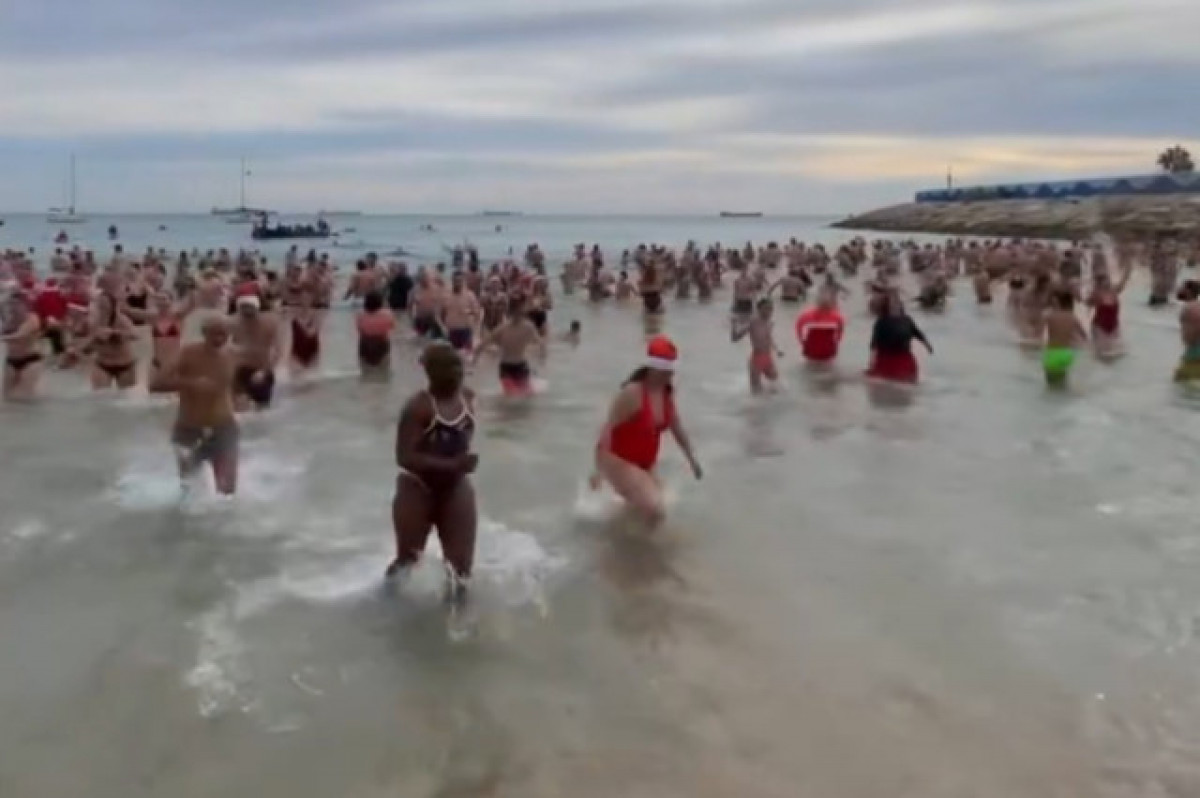 VÍDEO | Centenars de persones es banyen a la platja del Miracle de Tarragona per acomiadar l'any