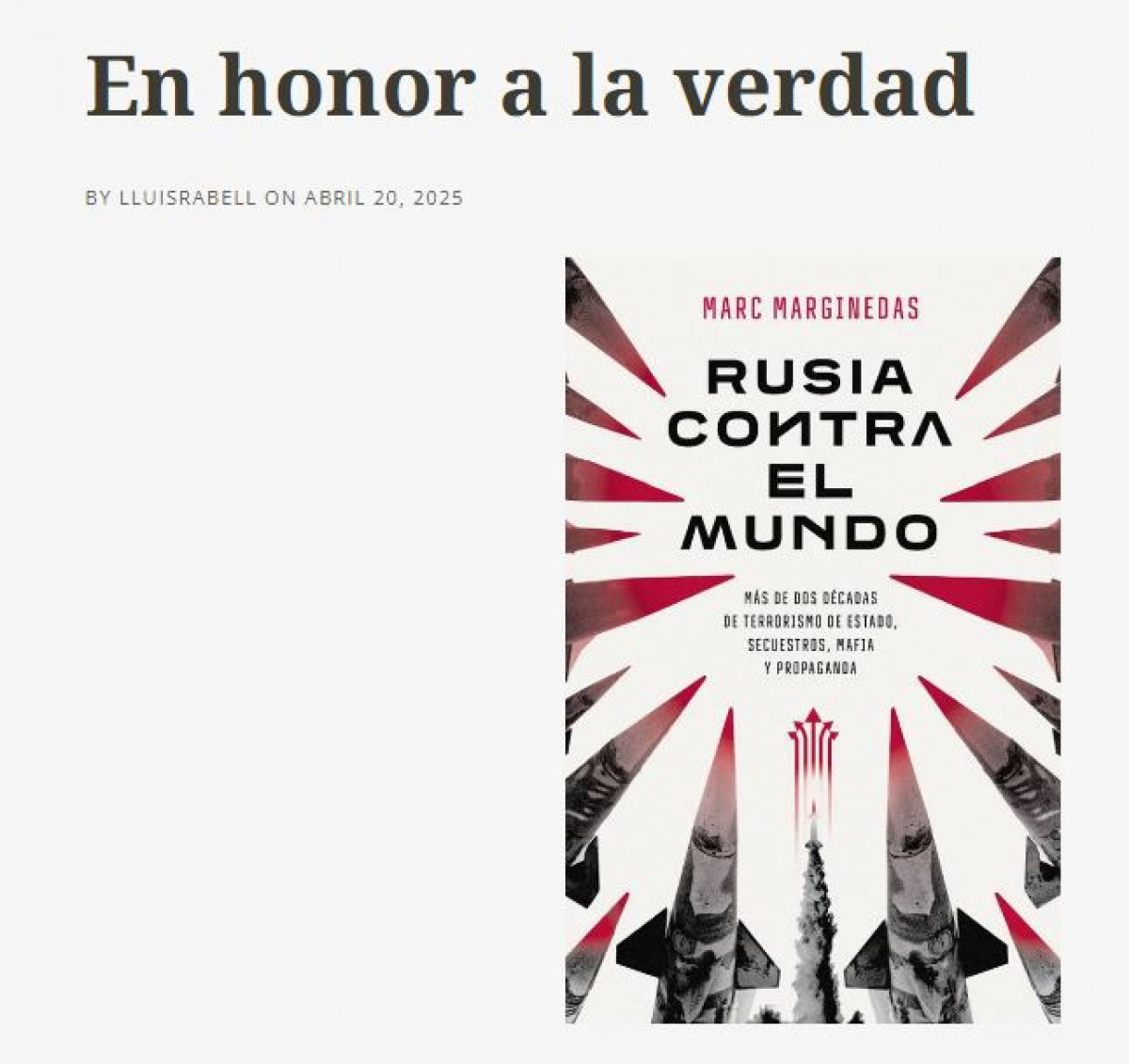 Un llibre recentment publicat –i ja reeditat diverses vegades–, Rússia contra el món (Ed. Península), ho demostra mitjançant una rigorosa investigació periodística. El seu autor, Marc Marginedas, corresponsal d’El Periódico en diversos països –del Magrib al Pròxim Orient, passant per Rússia–, es va fer conegut arran del seu dramàtic segrest per l’Estat Islàmic durant sis mesos a Síria, entre 2013 i 2014. El llibre vol ser un sentit homenatge als seus companys de professió assassinats pels terroristes. De fet, el millor homenatge que se’ls pot retre: la recerca de la veritat.