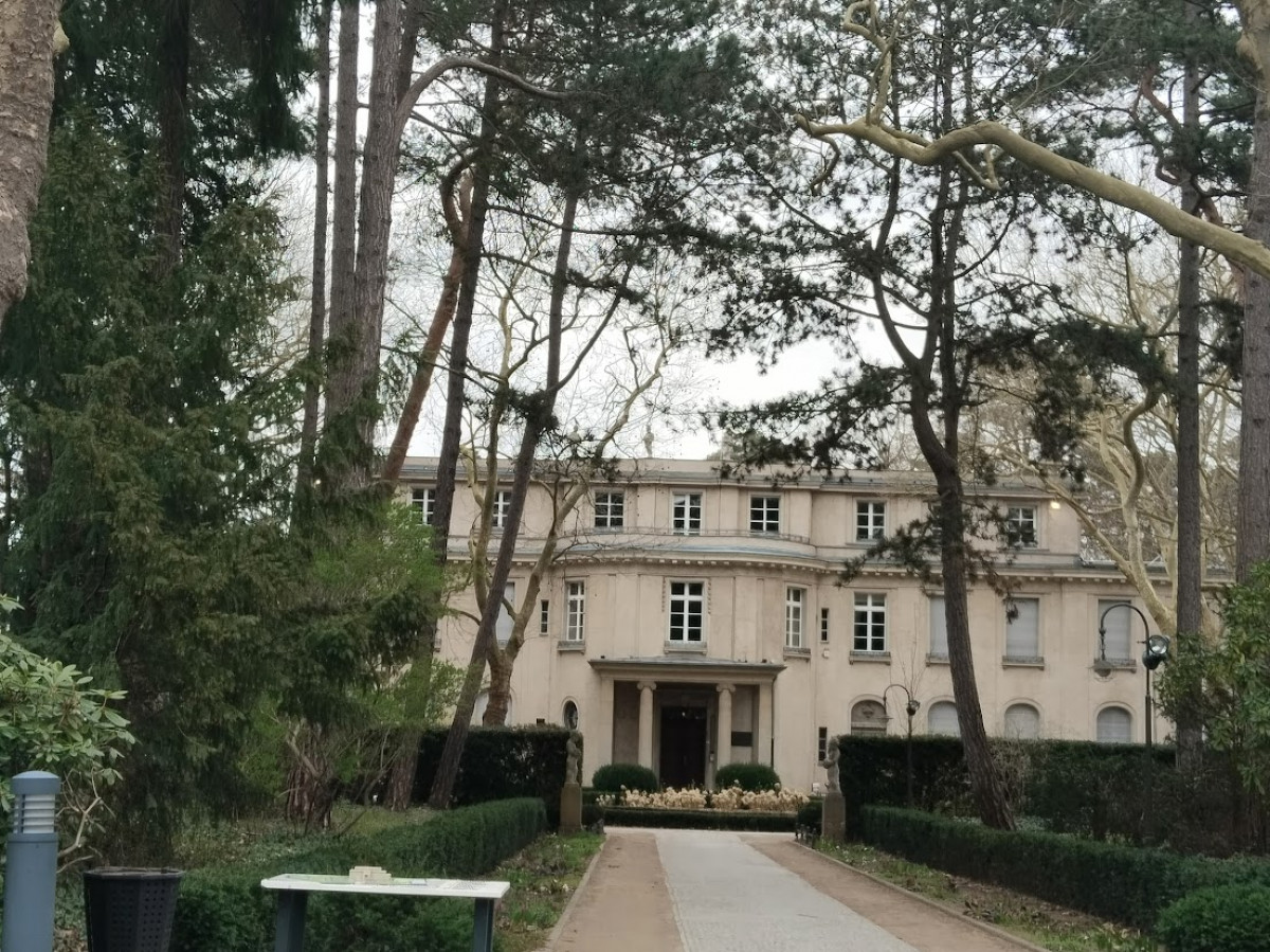 Però hi ha una dada més, en aquest cas inquietant, i és que en un dels hotellets construïts en tan idíl·lic paratge es va programar amb eficàcia germànica el major genocidi recent de la història de la humanitat. Ara es coneix com la “casa de la conferència” i va ser construïda entre 1914 i 1915 com a Villa Marlier per l’industriós del mateix cognom, sobre plànols de l’arquitecte Paul O. Baumgarten. Més tard va passar a ser propietat de Friedrich Minoux, qui el 1940 la va vendre al seu torn a les SS, essent utilitzada a partir d’aleshores com allotjament per a visitants oficials i agents de policia estrangers. Finalitzat el conflicte, es va habilitar com a residència d’oficials aliats, primer soviètics i després nord-americans, per ser adquirida el 1947 per l’Ajuntament de Berlín, que la va cedir al Partit Socialdemòcrata. Però poc temps, perquè a partir de l’estiu de 1952 i fins al 1988 es va utilitzar com a casa de colònies per als nens del districte urbà de Neukölln. Finalment, el 1992 es va convertir en “lloc de memòria” amb l’objectiu d’explicar què és exactament el que va passar al seu menjador el 20 de gener de 1942.