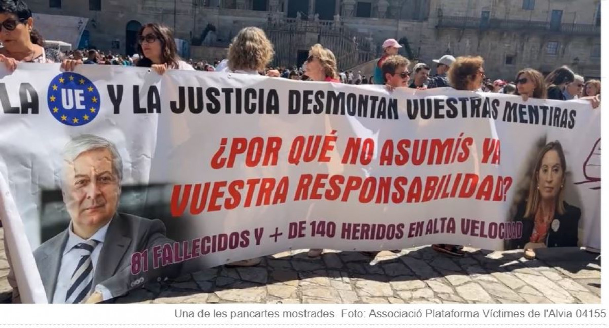 Ahir festivitat de l'Apòstol Santiago tenia lloc, a la capital de Galícia, una manifestació de víctimes i familiars dels morts a l'accident d'Angrois, Santiago de Compostel·la. On reclamaven justícia. Diverses de les pancartes que portaven els assistents portaven les fotografies dels ex ministres de Transports, José Blanco i Ana Pastor. Dos polítics que tenien responsabilitats en aquest tema. El primer està fent negocis i la segona continua en política, tot i que ja ha començat el declivi amb Feijóo.