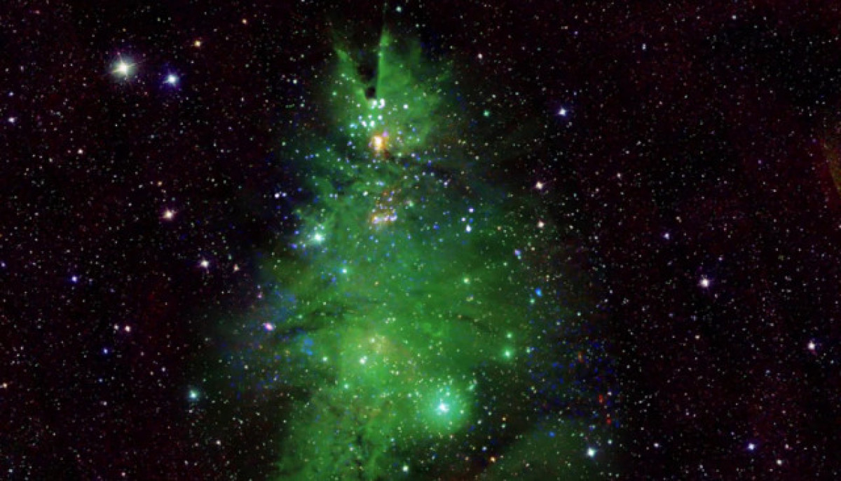 L'objecte NGC 2264, també conegut com a “Cúmul d'Arbres de Nadal”, mostra la forma d'un arbre estel·lar amb la brillantor de llums de colors molt nadalenques.