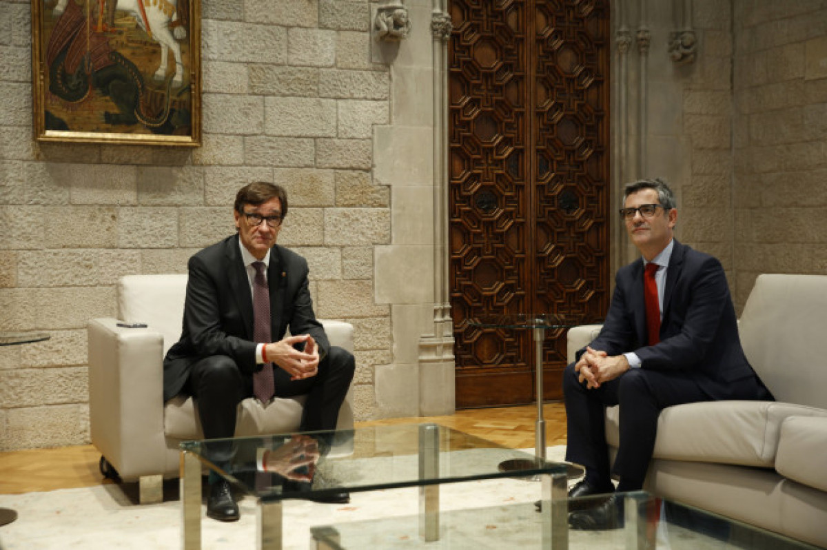 El president de la Generalitat, Salvador Illa, ha rebut aquest divendres el ministre de Presidència, Justícia i Relacions amb les Corts, Félix Bolaños, al Palau de la Generalitat, i tots dos s'han compromès a reforçar la cooperació entre governs.