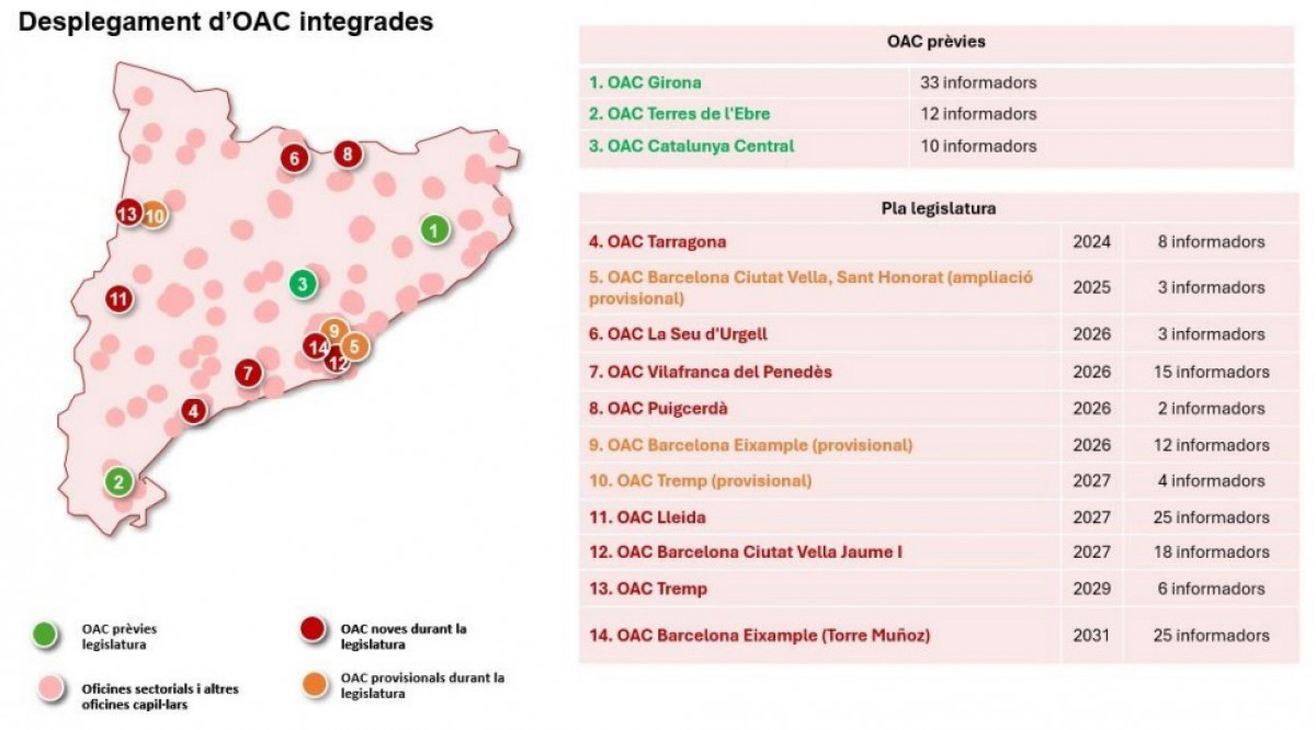 La planificació institucional estableix la creació de nou noves seus i cinc oficines mòbils entre 2026 i 2027, amb l'objectiu d'acostar l'atenció administrativa a tots els racons de Catalunya i millorar l'accessibilitat dels tràmits.