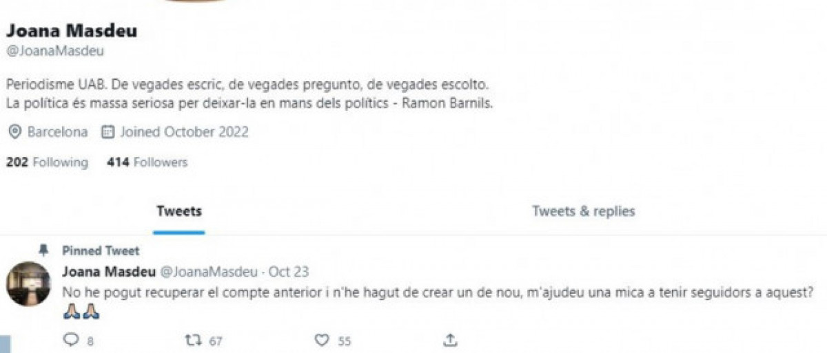 El compte de Twitter des del qual actuava Masdeu es va crear aquest mateix mes, i els seus primers seguidors eren dirigents de Junts afins a Dalmases com Laura Borràs , Jaume Alonso-Cuevillas o Aurora Madaula . Tot i això, i per a sorpresa de tots, Joana Masdeu mai no ha existit: es tractava d'un compte fals dedicat a impulsar les idees d'un sector de Junts.