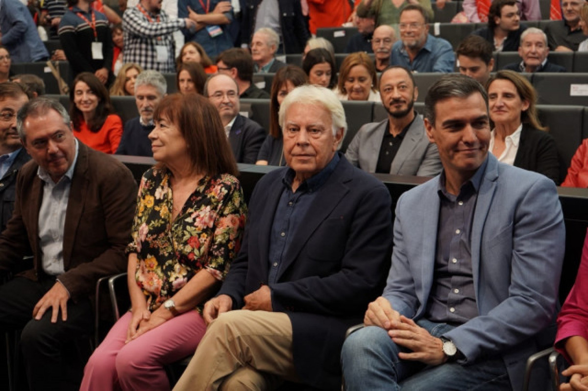 Felipe González ha ocupat un lloc preeminent a la primera fila de l'auditori amb l'actual secretari general del PSOE i president del Govern, Pedro Sánchez, i els actuals màxims responsables del PSOE federal i del PSOE d'Andalusia.