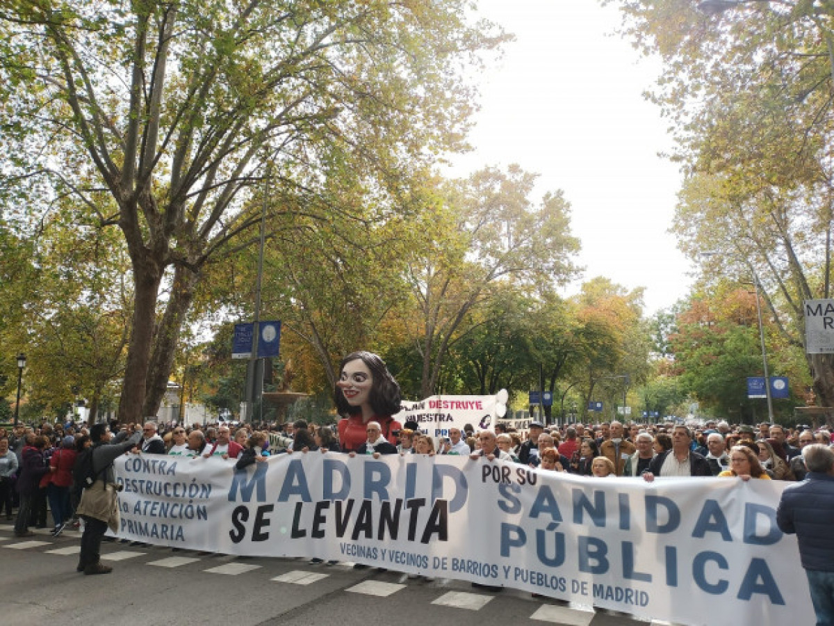 Sota el lema 'Madrid s'aixeca per la Sanitat Pública. Contra el Pla de Destrucció de l'Atenció Primària', l'acte està convocat pel moviment de barris i pobles de Madrid , veïns que durant els darrers anys han protagonitzat protestes a diferents punts de la regió en defensa d'una Sanitat pública, universal i de qualitat.