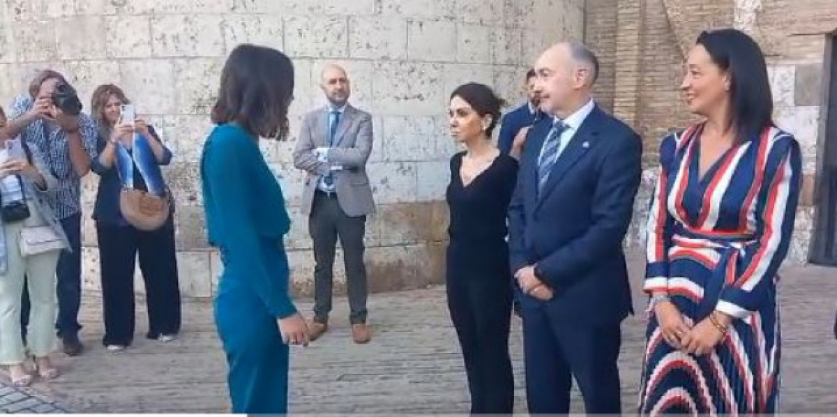 En un altre franc es veu com a Ángela Rodríguez li passa el mateix i passa a saludar la resta d'autoritats presents a la recepció institucional.