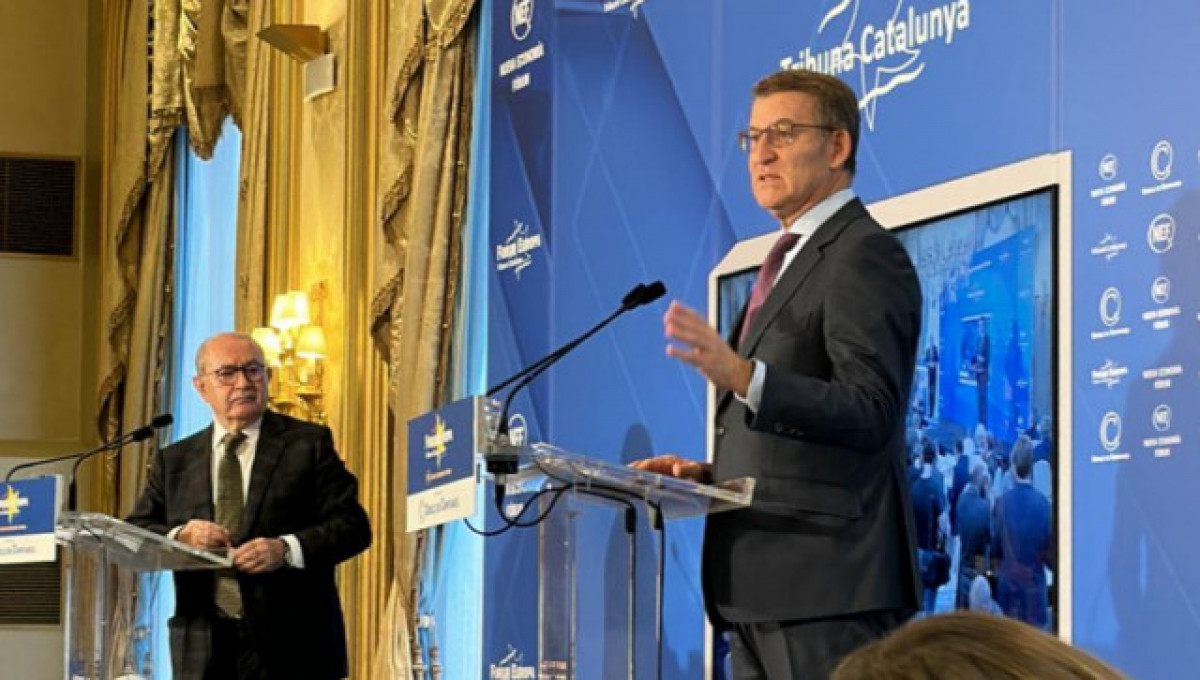 En participar com a ponent en aquest esdeveniment informatiu organitzat per Nova Economia Fòrum a Barcelona, Feijóo es va queixar de les crítiques que va rebre per part del PSOE quan va rebre l'encàrrec del Rei de presentar-se a la investidura després d'haver estat el candidat del partit més votat.
