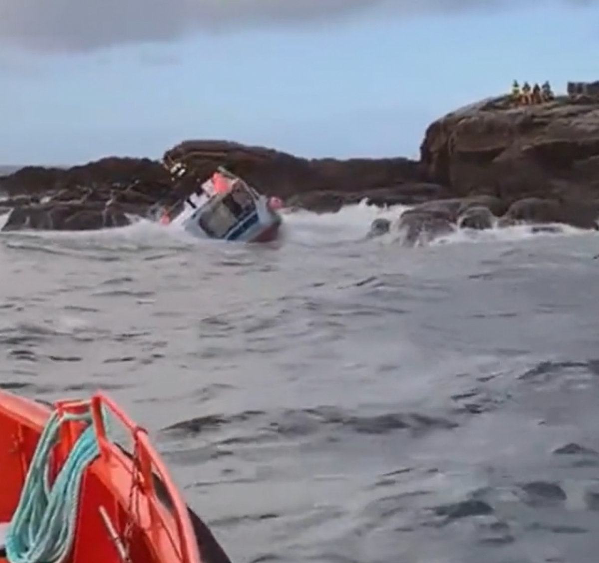 Nesta circunstancia, vos equipos de Salvamento Marítimo, avisados por outros pesqueiros dá zona, chegaron ao lugar e desenvolveron un operativo complexo para poder aproximar aos naufragos. Para entón, ou pesqueiro estaba xa totalmente zozobrado entre as rocas e sufría ou embate dás ondas, dificultando aínda máis vos labores dous rescatistas.