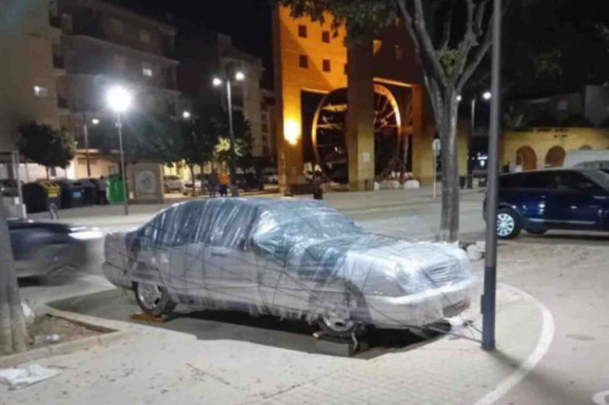 Màlaga exposa el seu humor durant la DANA: Un cotxe plastificat?