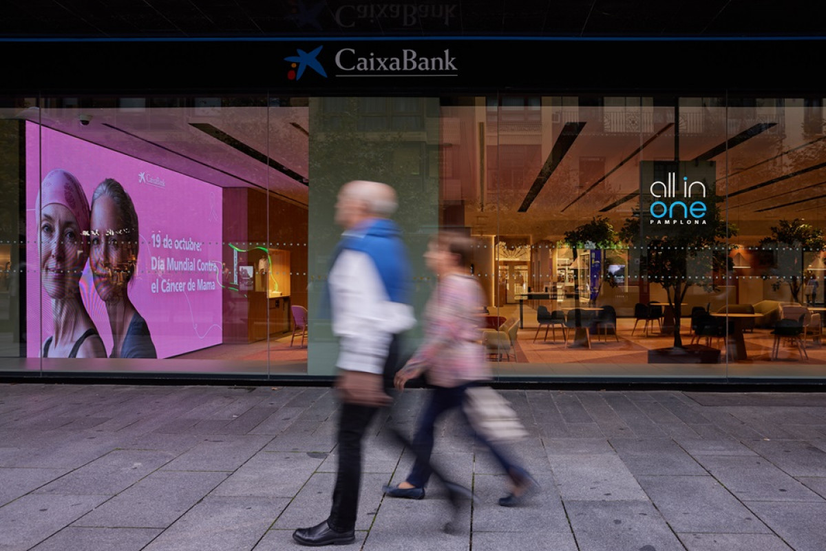 CaixaBank també il·luminarà de rosa, a més de Torre Sevilla, les 'all in one' de Barcelona, Madrid, València, Eivissa i Pamplona, a les quals en aquesta edició se sumen les noves 'all in one' de Tenerife i Las Palmas de Gran Canària i les gairebé 2.150 pantalles de les oficines Store, Store Premier i Store Negocios.