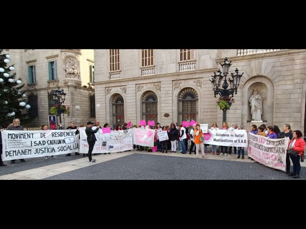 "Avui, després de 8 mesos, tornem a sortir al carrer per acabar amb la prepotència dels alcaldes i les alcaldesses que no escolten. Les cuidadores seguim sent un sector feminitzat i precaritzat. Ningú cuida les que cuiden". Aquestes van ser algunes de les consignes que es van sentir dissabte 26 de novembre passat a la plaça Sant Jaume de Barcelona, que va ser l'escenari d'una nova protesta de les treballadores d'atenció domiciliària de Catalunya.