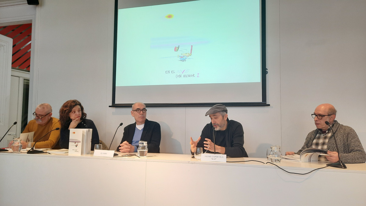 El llibre “En el AVE con humor 2” també recorda els dibuixants que ens han deixat en els últims anys. Per això, la presentació d’aquest matí ha servit d’homenatge als autors desapareguts recentment, com Fer, Romeu, Lolo i Toni Batllori.