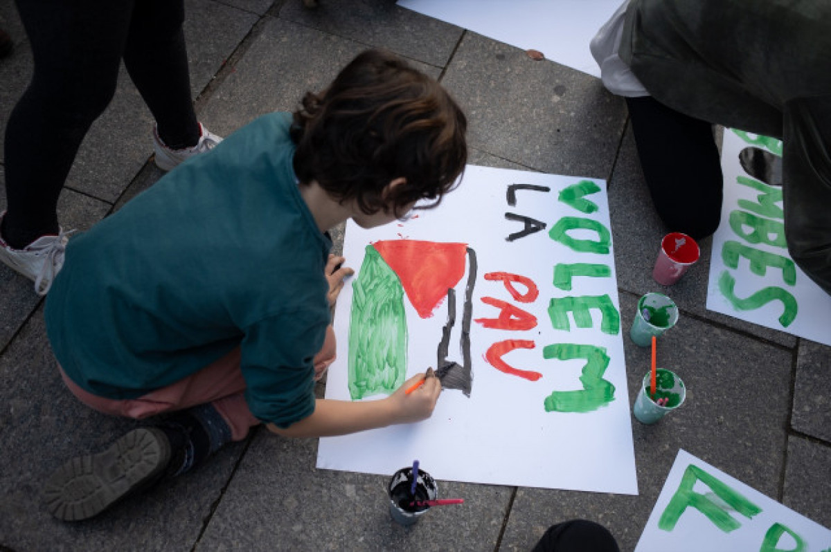 A Barcelona, a l'Escola Rius i Taulet, els estudiants han realitzat una activitat taller amb els pares i professors i han penjat pancartes solidàries amb lemes com 'No volem les bombes', 'No al genocidi de Gaza' i 'From the river to the sea, Palestina will be free' (Des del riu fins al mar Palestina serà lliure).