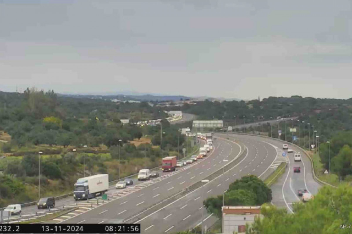 Tall total a l'AP-7 a Tarragona per pluges torrencials: llargues retencions i desviaments obligatoris