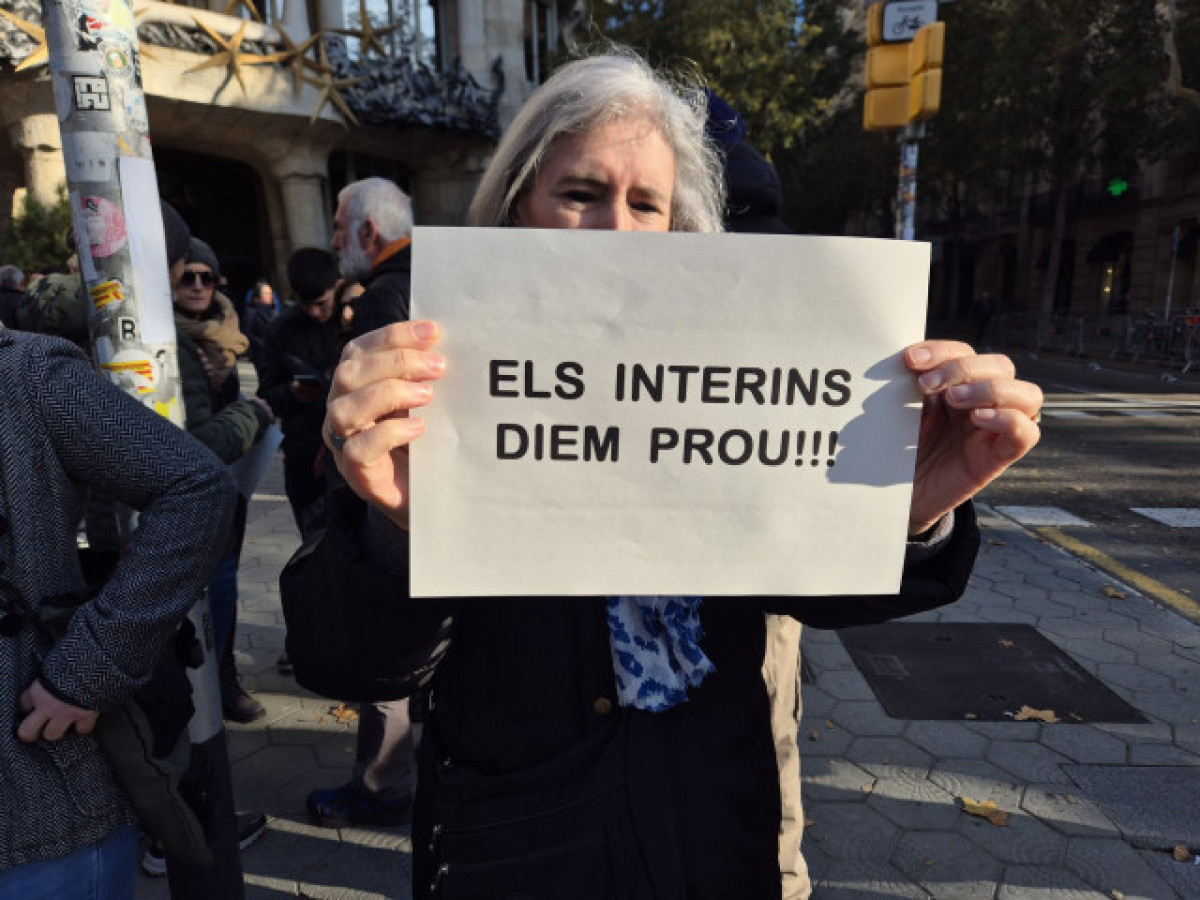 Aquest dissabte, més de 6.000 treballadors interins de l'administració catalana es van concentrar al centre de Barcelona per exigir la regularització de la situació laboral. La protesta va començar davant de la seu de la Comissió Europea al Passeig de Gràcia i va culminar a la Plaça de Sant Jaume, després de recórrer la Via Laietana.