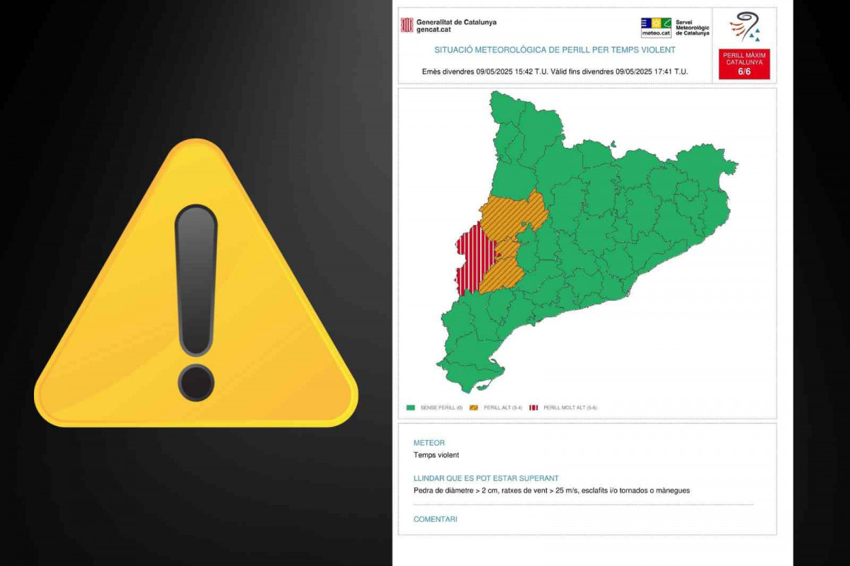 El Servei Meteorològic de Catalunya ha emès aquest divendres a la tarda un avís en nivell de perill màxim per "temps violent" a la comarca del Segrià (Lleida), segons ha informat en una anotació a 'X' recollida per Europa Press.