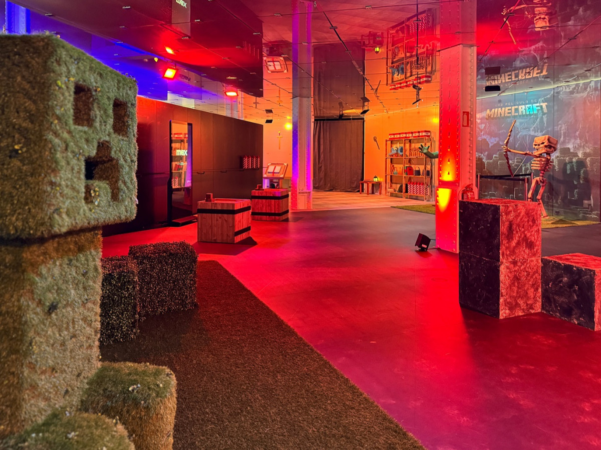 La mostra, oberta fins al 12 de juliol a la Flagship de Telefónica a Plaça Catalunya 16 (Barcelona), recrea escenaris icònics de l'univers Minecraft amb figures gegants, sets immersius i un espectacular portal al Nether.