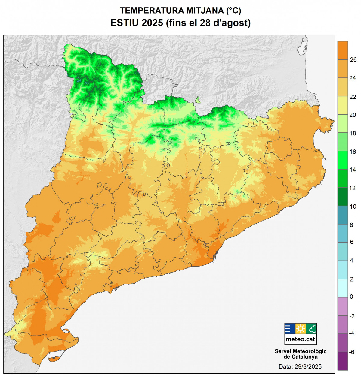 La temperatura de la mar també ha marcat rècords: el 18 de juliol, en l’Estartit, es van registrar 26,8 °C, la més alta per als mesos de juny i juliol. Aquest escalfament del Mediterrani no sols redueix l'efecte termoregulador sobre la costa, sinó que també augmenta l'energia disponible per a tempestes de tardor.