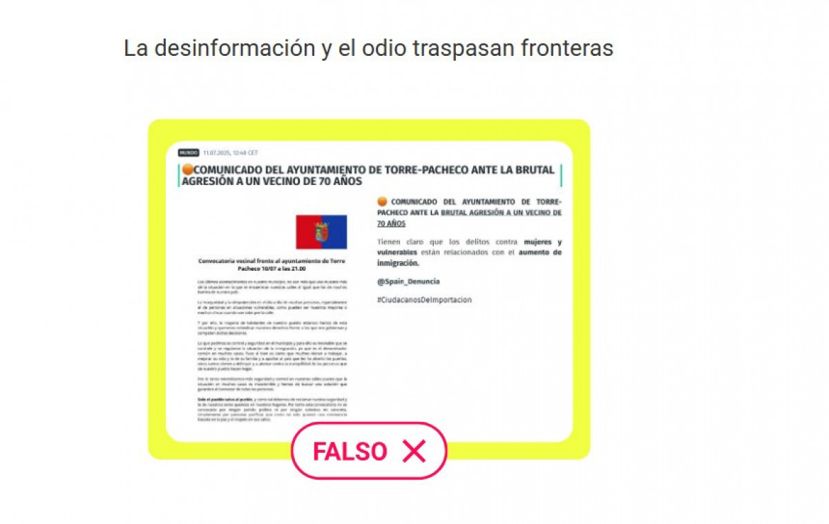 A més, encara que la Llei de Serveis Digitals (DSA) exigeix a les plataformes retirar continguts nocius, la realitat és que, segons un informe de Oberaxe, només el 22% de les publicacions d'odi relacionades amb els successos de Torre Pacheco van ser retirades. Això demostra que la societat encara no està completament preparada per a enfrontar la desinformació, i el desafiament continua latent.