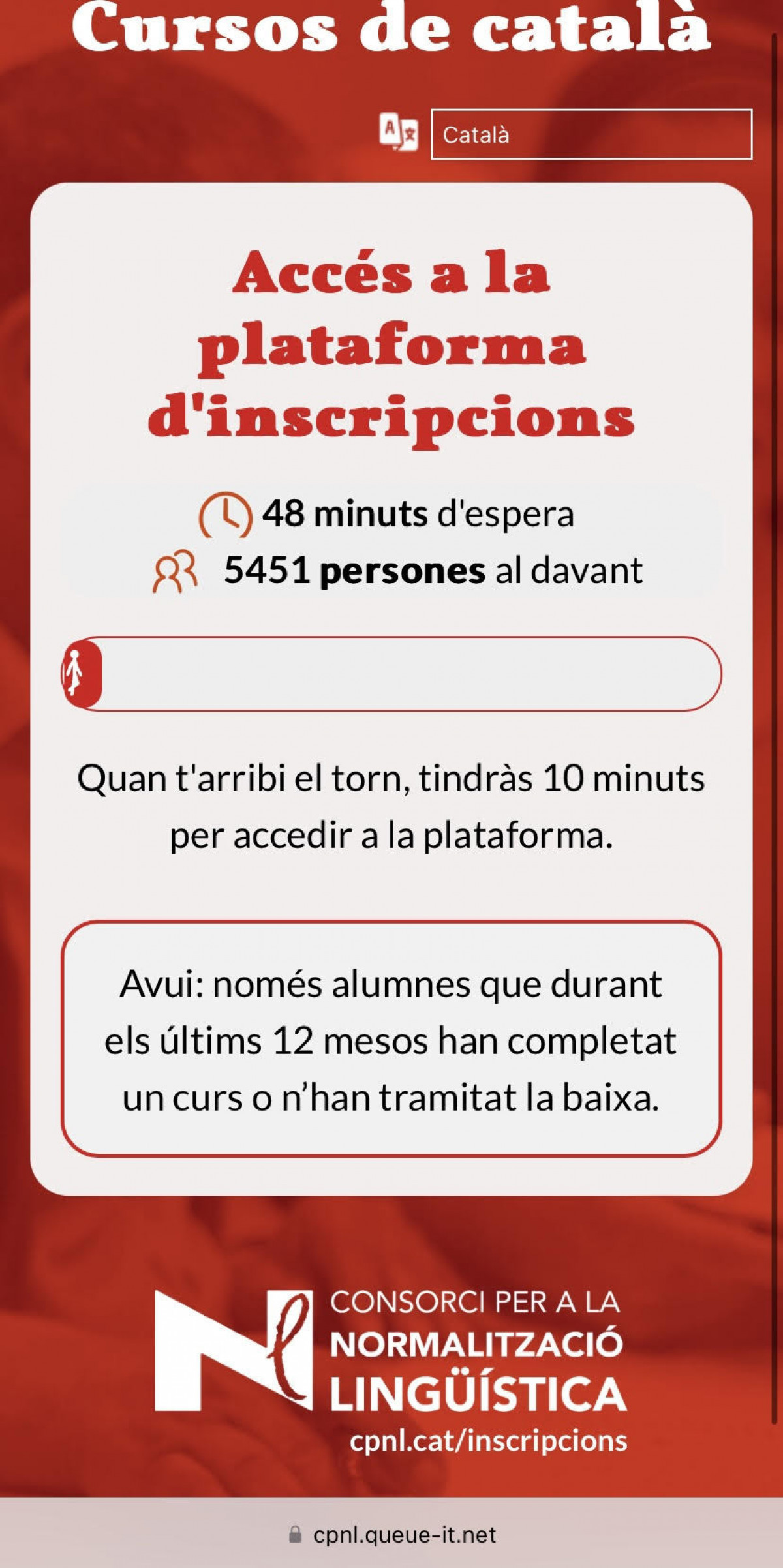 No obstant això, la gran demanda ha provocat problemes en el procés d'inscripció. En el primer dia, la pàgina web es va veure saturada, amb cues d'espera que van arribar a superar l'hora i la presència de més de 5.000 persones en línia intentant accedir al sistema.