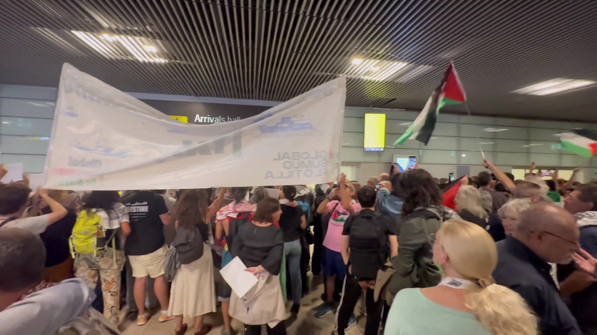 L'aeroport de Barajas s'ha omplert de familiars, amics, simpatitzants de la causa palestina i representants polítics que han esperat als activistes amb pancartes i banderes. “És important donar suport a la labor que han fet de visibilitzar i intentar complir la legalitat internacional, que consisteix a poder manar ajuda humanitària a Gaza”, declara Juanjo, un dels assistents, que no coneix personalment a cap dels activistes.