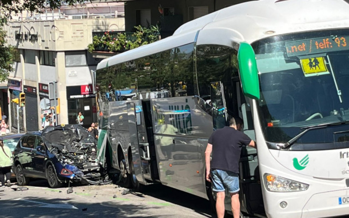 Accident a Barcelona: un autobús xoca contra un cotxe i un altre acaba al metro de Carmel